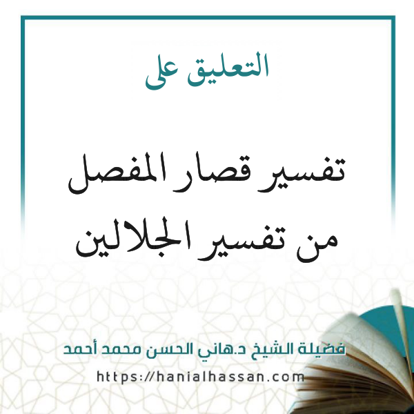 التعليق على تفسير قصار المفصل من تفسير الجلالين (8 دروس) Posted on أبريل 3, 2026 ساهم بنشر العلم النافع في مواقع التواصل!فايس بوك تويترWhatsapp تفسير الجلالين المجلس الأول📝 الكلام على المصنِّفَينِ، وأهمية الكتاب، ومنهجه.📖 تفسير سورة الضحى. المجلس الثاني 📝 التعليق على تفسير سورتَي الشرح، والتين. المجلس الثالث 📝 التعليق على تفسير سورتَي العلق، والقدر. المجلس الرابع 📝 التعليق على تفسير سورتَي البينة، والزلزلة. المجلس الخامس 📝 التعليق على تفسير سورتَي العاديات، والقارعة. المجلس السادس 📝 التعليق على تفسير سور التكاثر، والعصر، والهمزة. المجلس السابع 📝 التعليق على تفسير سور الفيل، وقريش، والماعون والكوثر، والكافرون. المجلس الثامن والأخير 📝 التعليق على تفسير سور النصر، والمسد، والإخلاص، والفلق، والناس. تحميل مباشر لجميع الدروس الاستماع للدروس عبر تليجرام
